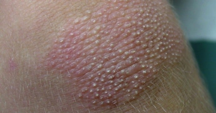 Kératose pilaire (aussi connue sous le nom de «peau de poule » sur l’arrière de vos bras). Cela tend à être le résultat d’une carence en en acide gras et en vitamine A secondaire à une malabsorption des graisses par les intestins causée par le gluten qui abîme les intestins.