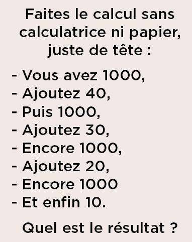 Cela s’explique par un phénomène appelé surcharge cognitive. Notre cerveau, en tentant de simplifier, regroupe instinctivement les grands nombres (les 1000) et additionne ensuite les petits chiffres trop rapidement. Résultat : une erreur fréquente, entraînant un excès de confiance et un traitement mental trop rapide.