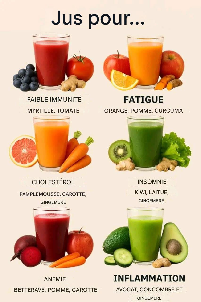 Envie d’une délicieuse façon de favoriser votre bien-être ? Ces recettes de jus faciles et riches en nutriments ciblent les problèmes de santé quotidiens, du manque d’énergie aux troubles du sommeil, à partir d’ingrédients frais et naturels. Préparez-les chez vous avec un minimum d’effort et un maximum de bienfaits !