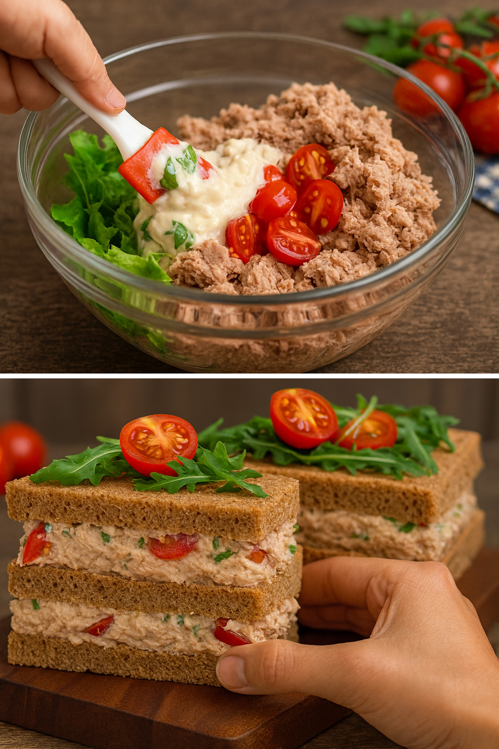 Elle se prépare en quelques minutes, se conserve au réfrigérateur et… est superbe sur la table. De plus, elle est polyvalente : vous pouvez utiliser du pain complet ou protéiné, de la mayonnaise légère ou du yaourt grec, et la personnaliser avec les légumes que vous avez sous la main. Le résultat ? Un plat frais, riche en protéines, à la texture moelleuse et agréable.