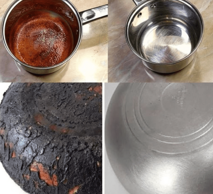 Quant à l’extérieur des casseroles et poêles, on peut les nettoyer avec du bicarbonate de soude, du vinaigre et du jus de citron. Vous pouvez mélanger 2 cuillères à soupe de chaque ingrédient et frotter l’extérieur des moules avec la pâte obtenue. La saleté disparaîtra immédiatement.