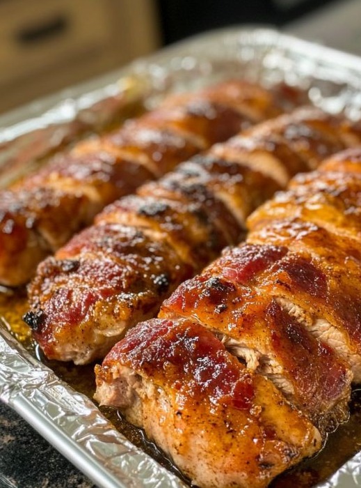 Een varkenshaas omwikkeld met knapperig spek en geglazuurd met een vleugje bruine suiker is een buitengewoon gerecht. Dit gerecht doet denken aan zondagse diners en samenzijn met dierbaren. Dit heerlijke, lichtzoete gerecht warmt je zeker op en vult je. De bruine suiker zorgt voor een verleidelijk laagje en het spek geeft het een heerlijke crunch. Dit gerecht is een favoriet bij het hele gezin en is ideaal voor speciale gelegenheden.
