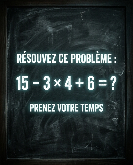 À première vue, c’est un calcul que l’on pourrait donner à un enfant. Quelques nombres, des signes plus et moins, une multiplication… rien de compliqué. Et pourtant, ce petit exercice fait trébucher énormément d’adultes. Pourquoi ? Parce que nous avons tous tendance à aller trop vite, à calculer dans l’ordre où nous lisons, sans réfléchir aux règles apprises à l’école. Et c’est exactement là que se cache le piège.