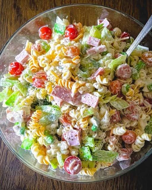 La salade de pâtes étagée est bien plus qu’un simple plat d’été : c’est une véritable œuvre culinaire, aussi belle à regarder que délicieuse à savourer. Présentée dans un grand saladier transparent ou en verrines, elle séduit par ses couches colorées, sa fraîcheur et son mélange harmonieux de textures. Idéale pour un pique-nique, un buffet ou un repas convivial, elle s’adapte à toutes les envies et se prépare facilement à l’avance.