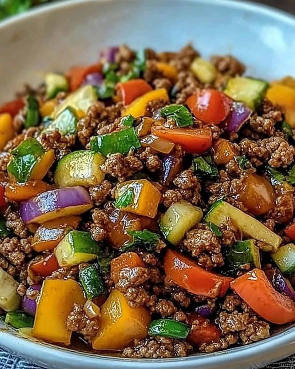 Le Stir-Fry de Bœuf aux Légumes est une recette simple, rapide et pleine de saveurs. Ce plat combine de tendres morceaux de bœuf haché et une variété de légumes croquants, créant un repas équilibré qui ravira toute la famille. La sauce soja apporte une touche umami parfaite pour rehausser les saveurs, et l’huile de sésame ajoute une note légèrement fumée. Ce plat est idéal pour une soirée rapide ou un dîner léger mais délicieux.