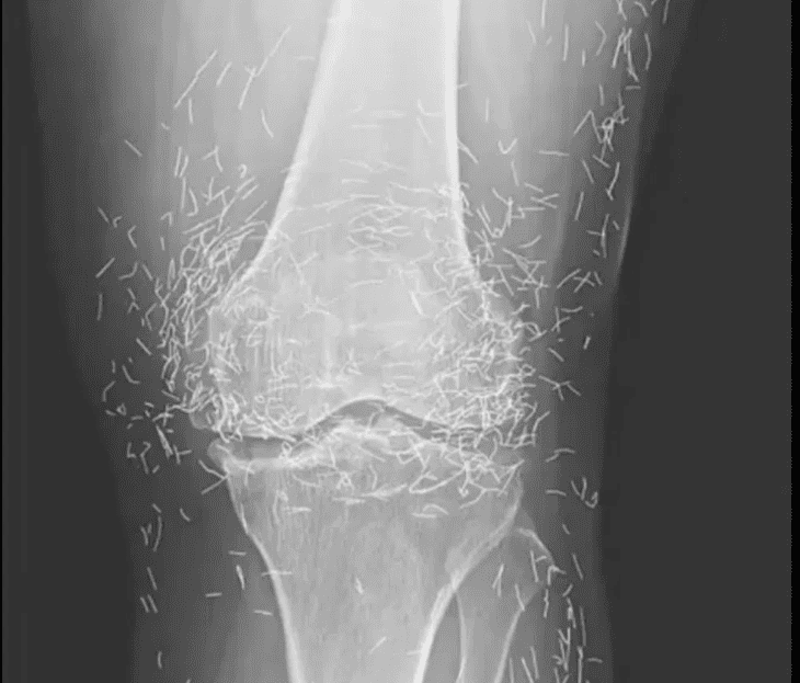 En examinant une radiographie des genoux d’une femme âgée souffrant de fortes douleurs articulaires, les médecins ont découvert une mine d’or : des centaines de minuscules aiguilles d’acupuncture en or, restées dans ses tissus.